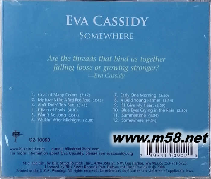 本輯是第一張收錄Eva cassidy本人創作歌曲的專輯!Eva cassidy的音樂成為市場一致肯定的心靈歌聲,她的專輯最近更掀起全球搶購.樂壇對于她的一致評價都非常高,這張和其它幾張Eva專輯同樣是必買的!