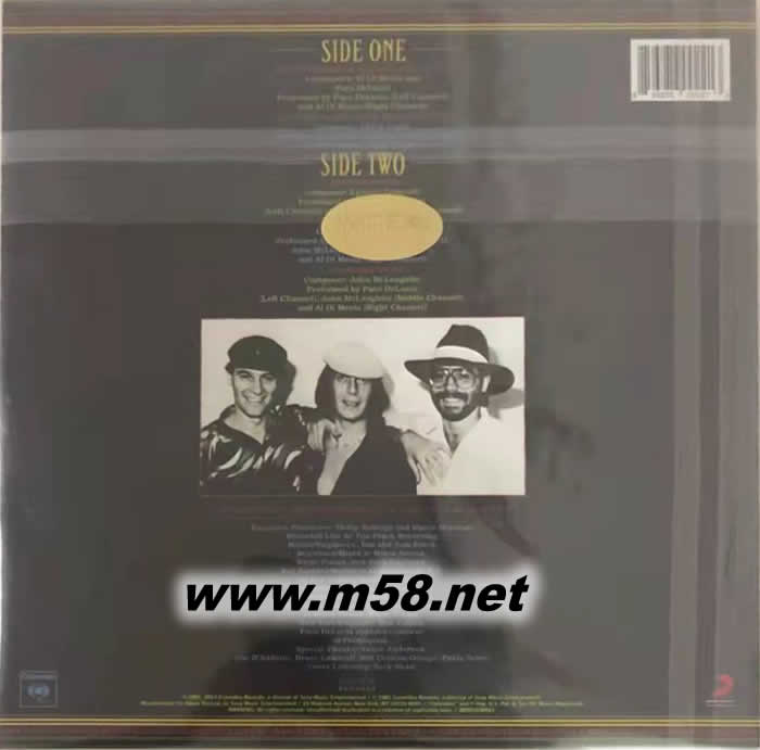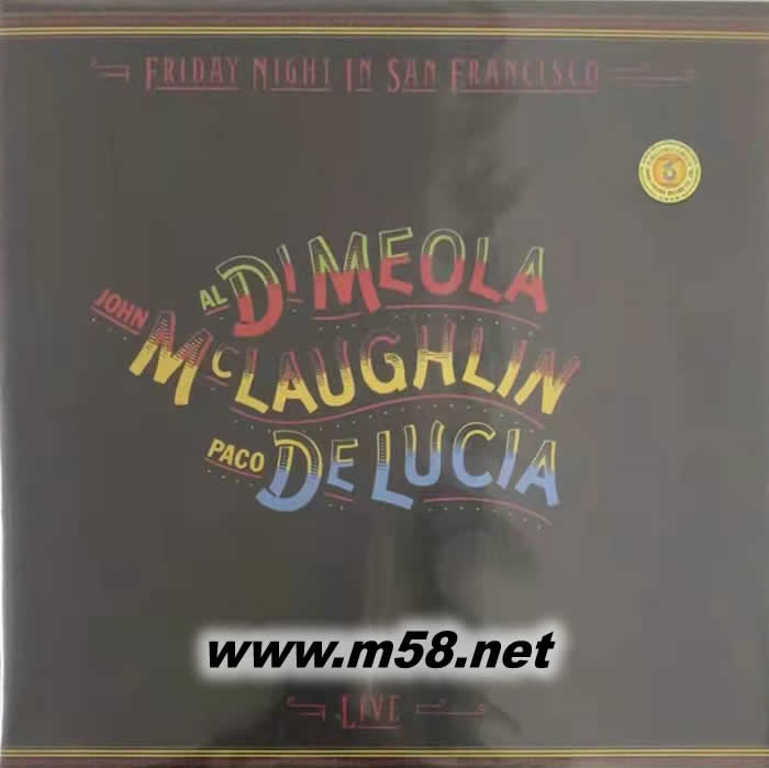 Friday Night in San Francisco(舊金山星期五之夜 三位吉它大師LIVE) 黑膠(m58.net) 三位不同國藉的吉他大師 (Al Di Meola/美國, John Mclaughlin/英國, Paco De Lucia/西班牙) 1980年某日星期五的夜晚在美國舊金山The Warfield Theatre吉他三重奏現(xiàn)場錄音.三位大師相互競飆手指的速度,散播佛朗明哥的熱情,激情與技巧盡現(xiàn),令人大呼過癮.史上最佳吉他現(xiàn)場競技,三位大師合作默契絕佳的吉他演奏,真是可以用登峰造極來形容.