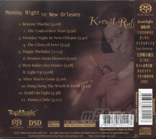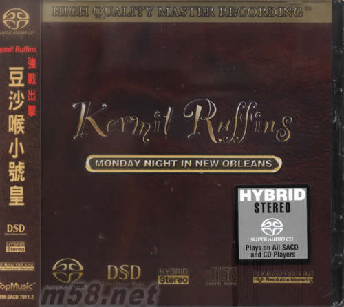 豆沙喉小號(hào)皇SACD(m58.net) 20BITS /192KHZ 天樂(lè)唱片隆重推出了一張《monday night in new orleans》發(fā)燒JAZZ的SACD。碟中的主人翁Kermit Ruffins是一位來(lái)自新奧爾良的黑人JAZZ樂(lè)手,眾所周知JAZZ是黑人社會(huì)的民間音樂(lè),而主要發(fā)源地就是來(lái)自美國(guó)的新奧爾良,在這塊土地上曾經(jīng)孕育出不少頂極的JAZZ樂(lè)樂(lè)手。由于Kermit Ruffins天賦一把磁性剛毅的嗓音,而且還能吹得一手好小號(hào),所以唱片公司給了一個(gè)非常親切的稱呼給他叫“豆沙喉小號(hào)皇”。Kermit Ruffins在這張專輯中糅合了傳統(tǒng)美式爵士和藍(lán)調(diào)風(fēng)味在其中,樂(lè)曲中都沒(méi)有太多的規(guī)限以隨心所欲的方式去演繹。專輯里的12首作品,Kermit Ruffins除了擔(dān)任主唱外還要擔(dān)任小號(hào)手一職,細(xì)聽(tīng)這張專輯不難發(fā)現(xiàn)Kermit Ruffins的演奏風(fēng)格有著一些殿堂級(jí)JAZZ大師的影子,就像當(dāng)中的《monday night in new orleans》和《The glory of love》的吹奏方法有著Louis Armstrong般的生鬼活潑十分過(guò)癮。在制作方面,這張專輯采用了雙層SACD方式發(fā)行,CD層采用了32bit/192Khz格式制版,SACD層則由日本SONY總部用頂極DSD設(shè)備進(jìn)行編碼,所以大家無(wú)論聽(tīng)那個(gè)層都有高音質(zhì)表現(xiàn)。總的來(lái)說(shuō)在現(xiàn)在JAZZ樂(lè)壇能夠聽(tīng)到像Kermit Ruffins這樣全能的樂(lè)手實(shí)在難得,誠(chéng)意推薦給喜歡JAZZ的樂(lè)迷們。