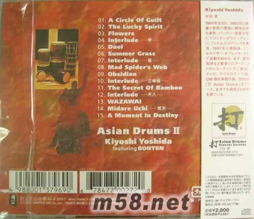 價格為估,以實到貨為準! 書香系列日本版 打 II(m58.net) 吉田潔以太鼓樂團“梵天”作為其音樂的基座,和太鼓位列于音樂的后方,用以承托起整首樂章,三味線、尺八、日本箏,笛等樂器穿插其中,配合有速度感的太豉,把樂曲一浪接一浪的推向前方,技驚四座
