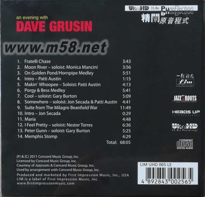 An evening with Dave Grusin limited edition (UltraHD)限量版專輯背面圖片