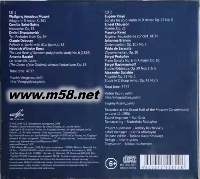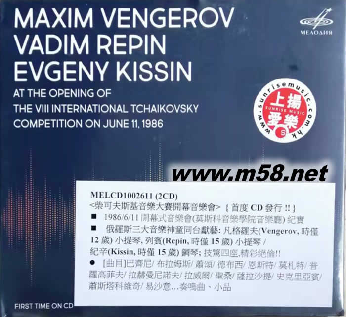1986 柴可夫斯基音樂大賽 開幕式音樂會 At the Opening of the Tchaikovsky Competition(m58.net) 凡格羅夫(Vengerov), 列賓(Repin )小提琴 / 紀(jì)辛(Kissin) 鋼琴 1986/6/11「柴可夫斯基音樂大賽」開幕式音樂會(莫斯科音樂學(xué)院音樂廳)紀(jì)實, 三大俄羅斯名家同臺獻藝 [曲目]巴齊尼/ 布拉姆斯/ 蕭頌/ 德布西/ 恩斯特/ 莫札特/ 普羅高菲夫/ 拉赫曼尼諾夫/ 拉威爾/ 圣桑/ 薩拉沙提/ 史克里亞賓/ 蕭斯塔科維奇/ 易沙意…奏鳴曲作品