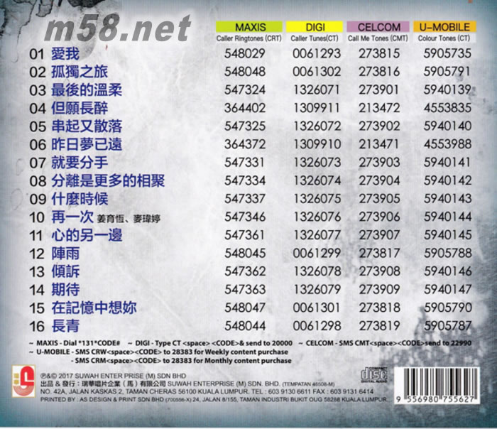 版 號(NO): SWCD27556 條碼(UPC): 9556980755627