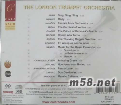 倫敦28 位小號手SACD(m58.net) 極罕有小號作品.集英倫著名樂團28拉小號手傾力演奏多首耳熟能詳小品,SACD更以SURROUND及STEREO于英國BXX MEDIA VALE STUDIO 3錄音,發燒味十足.