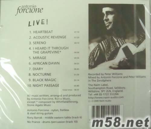 Antonio Forcione: Live 吉它火熱現場演奏會專輯背面圖片