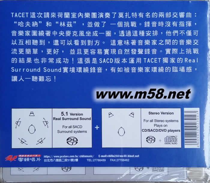 所屬歌手:   [Netherlands Chamber Orchestra 荷蘭室內管弦樂團] [莫扎特 MOZART] [TACET公司系列] [SACD發燒系列]