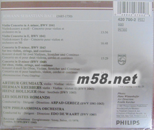 雙小提琴協奏曲Bach: Violin Concertos, Double Concertos PHILPS老版(m58.net)