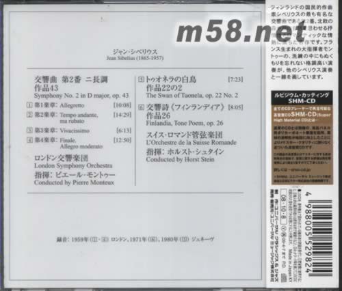 西貝柳斯 第二交響曲SIBELIUS: SYMPHONY NO.2 (SHM-CD 日本版)(m58.net) 指揮:PIERRE MONTEUX、HORST STEIN 錄音于:1959、1971、1980年