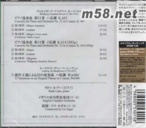 莫扎特鋼琴協奏曲 MOZART: PIANO CONCERTOS NO.12, NO.21, ETC.(SHM-CD 日本版)(m58.net) 指揮:URI SEGAL 錄音于:1970、1974年
