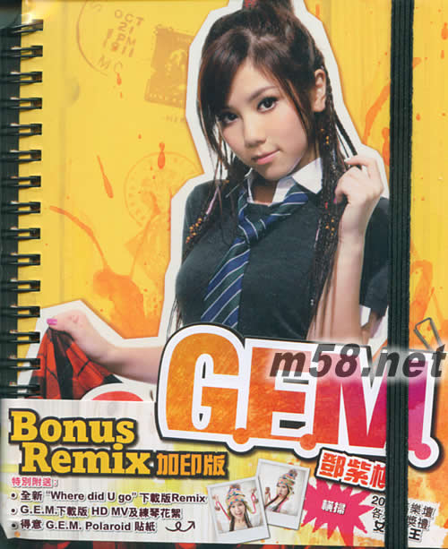 GEM(m58.net) 勇奪: TVB勁歌最受歡迎女新人金獎 叱咤樂壇生力軍女歌手金獎 新城勁爆創(chuàng)作新人王 Yahoo!搜尋人氣大獎女新人獎 特別附送: 全新“Where did U go"下載Remix G.E.M.下載版 HD MV及練琴花絮 得意GEM POLAROID貼紙