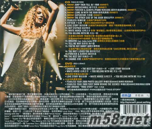 Fearless 無懼的愛 臺灣影音白金版 CD+DVD+2010年月歷專輯背面圖片