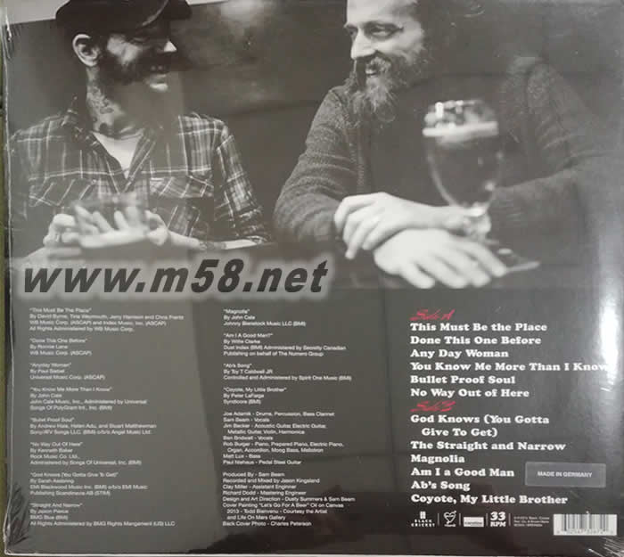 搖滾IRON AND Wine/Ben Bridwell - Sing Into My Mouth 180g 33RPM LP 黑膠(m58.net) 兩大另類音樂鬼才攜手合作,翻唱Sade、Bonnie Raitt、 Pete Seeger、JJ Cale、Talking Heads等人之經(jīng)典之作 ★2015年樂壇最令人期待之翻唱專輯,譜出另類與獨(dú)立音樂的全新火花 如果Iron & Wine加上Band Of Horses的主唱Ben Bridwell,會是什么樣另類又獨(dú)立的音樂火花?答案就在他們一起合作的翻唱專輯【Sing Into My Mouth】。 本名Samuel Beam的南加州歌手以Iron & Wine作為舞臺名稱,2002年出道至今發(fā)行過5張專輯,以電影【大公司小老板】的片尾曲"The Trapeze Swinger"受到眾人矚目;Band Of Horses 則靠著主唱Ben Bridwell高亢嘹亮的嗓音,以著名的"The Funeral"成為備受矚目的另類樂團(tuán)。這兩位在音樂圈耕耘多年的老友,在經(jīng)歷了多次意見交換后,終於決定合作一張翻唱眾多巨星經(jīng)典的專輯。專輯名稱來自於美國新浪潮樂團(tuán)Talking Heads名作"This Must Be the Place (Naive Melody)"中的歌詞,表達(dá)了他們想要在新世代演繹老經(jīng)典的決心。 【Sing Into My Mouth】的第一首歌曲便選了Talking Heads的"This Must Be the Place (Naive Melody)",以另類音樂詮釋80年代新浪潮的歌曲;"Done This One Before"則是重新演繹搖滾名人堂成員Ronnie Lane的搖滾經(jīng)典;10屆葛萊美得主Bonnie Raitt的名作"Any Day Woman"被兩人完美地翻唱;吉他之神艾力克萊普頓/Eric Clapton最推崇的JJ Cale,其經(jīng)典"Magnolia"以輕柔的旋律再次傳唱;民歌之父Pete Seeger的"Coyote, My Little Brothe"在兩大另類才子的音樂之下,獲得全新生命力。【Sing Into My Mouth】是一張前所未有的新體驗(yàn),選曲品味以及詮釋手法都是另類音樂的完美結(jié)晶。
