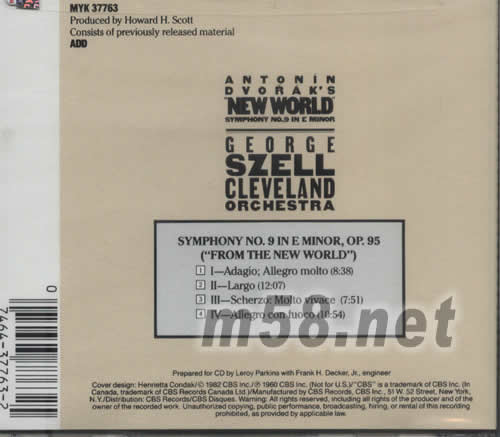 德沃夏克NEW WORLD SYMPHONY -SZELL專輯背面圖片