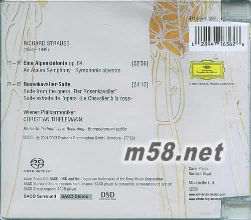R.斯特勞斯/英雄生涯,玫瑰騎士組曲 rosenkavalier-suite SACD專輯背面圖片