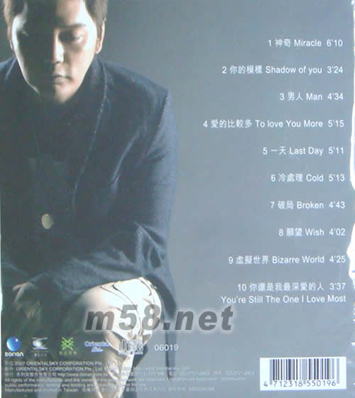 1. 神奇 Miracle 2. 你的模樣 Shadow of you 3. 男人 Man 4. 愛的比較多 To love You More 5. 一天 Last Day 6. 冷處理 Cold 7. 破局 Broken 8. 愿望 Wish 9. 虛擬世界 Bizarre World 10. 你還是最深愛的人 You`re Still The One I Love Most
