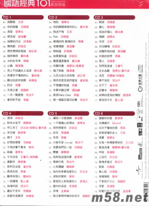 國(guó)語(yǔ)經(jīng)典101最?lèi)?ài)戀曲專(zhuān)輯背面圖片