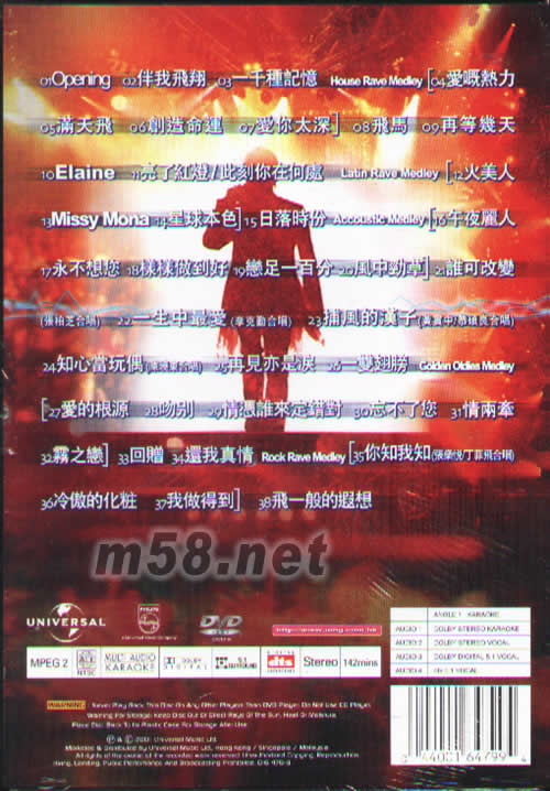 譚詠麟飛一般演唱會卡拉OK DVD專輯背面圖片