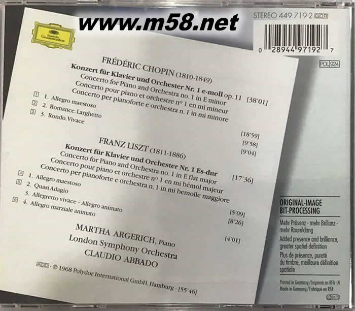 PIANO CONCERTOS 蕭邦 & 李斯特:第一號(hào)鋼琴協(xié)奏曲 Chopin & Liszt: Piano Concertos 大禾花版(m58.net)