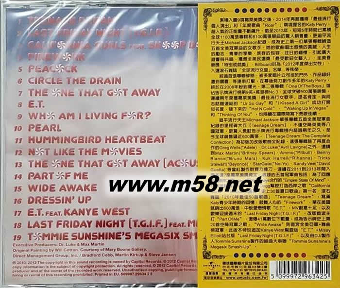 ★收錄“I Kissed A Girl”、“Hot N Cold”、“Waking Up in Vegas”三首全美白金暢銷單曲,特別追加“I Kissed A Girl”搖滾混音版