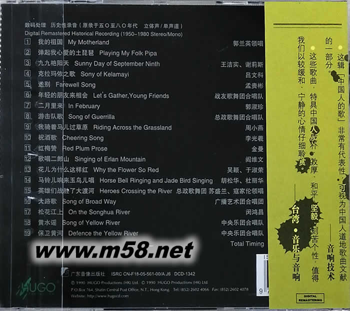 我的祖國 中國版專輯背面圖片