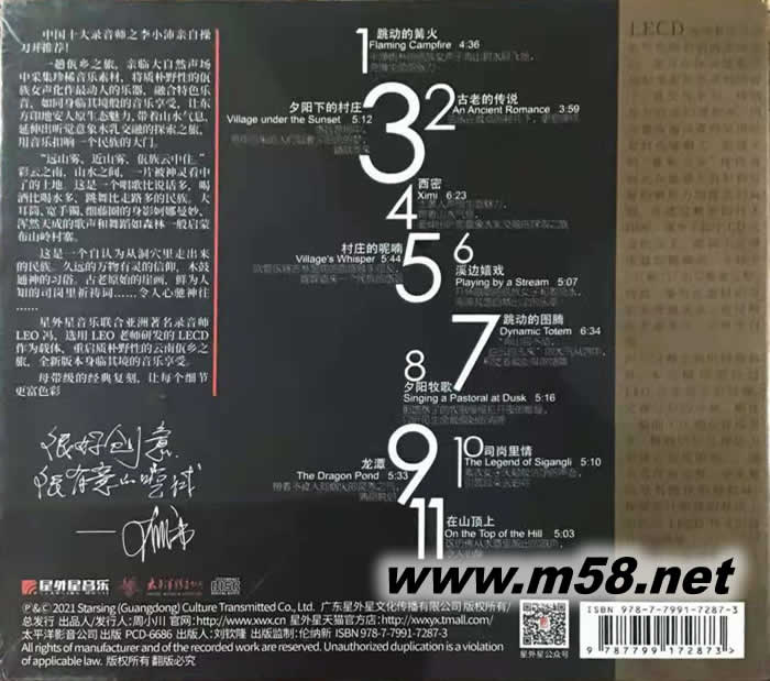 《再敘云之南》是中國十大錄音師之一李小沛親自操刀并推薦!這張專輯盡顯東方印地安人原生態的魅力。《跳動的篝火》、《村莊的呢喃》等十一首作品用音樂扣響一個民族的大門。