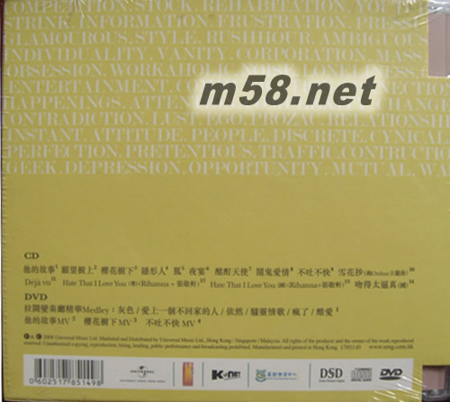 CD 01. 他的故事 02. 愿望樹上 03. 櫻花樹下 04. 隱形人 05. 狐 06. 夜宴 07. 酩酊天使 08. 鬧鬼愛情 09. 不吐不快 10. 雪花抄(跑Online主題曲) 11. Deja vu 12. Hate That I Love You(粵)(Rihanna+張敬軒) 13. Hate That I Love You(國)(Rihanna+張敬軒) 14. 吻得太逼真(國) DVD 拉闊變奏廳精華Medley:灰色/愛上一個不回家的人/依然/騷靈情歌/瘋了/酷愛 他的故事 MV 櫻花樹下 MV 不吐不快 MV