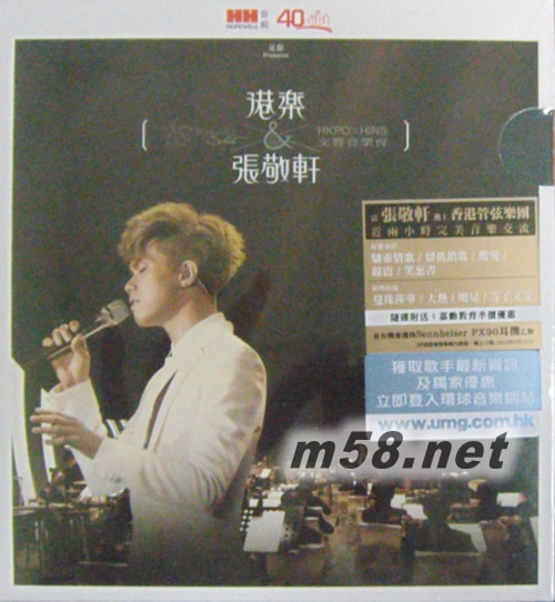 港樂 x 張敬軒交響音樂會CD(m58.net) 張敬軒與香港管弦樂團合作,于2011年11月假九龍灣國際展貿中心匯星舉行了三場音樂會。近兩小時的演出分為不同主題的環節:「Love」、「Inspiration」、「Freedom」和「Eternity」(合起來就是「LIFE」),歌手美妙而具感染力的歌聲,跟樂團澎湃的伴奏水乳交融,帶給樂迷一場聽覺饗宴。這個《港樂x張敬軒交響音樂會》共編排了逾二十首歌曲,軒仔除獻唱自己經過重新編制的首本名曲及新歌「Stop the Time」外,也特別向前輩們致敬,選唱了陳百強、梅艷芳、張國榮及葉德嫻的經典金曲。為了給樂迷驚喜,他甚至安排自己在半空舞臺上一邊彈奏苦練多時的豎琴、一邊翻唱陳潔儀的「等了又等」!
