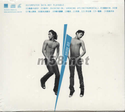 Shine On(m58.net) 2006年,天佑與又南闊別樂壇三年多,終于走在一起,并推出年度唱片《Shine On》。 新專輯收錄了14首歌曲,主打歌「鼎鼎大名」抒發戀人奮斗幾年時間,仍然無人認得他,這首歌描述一對情侶辛勤工作的歷程。另一曲「俗」(James Ting作曲、黃偉文填詞)描述戀人追求高時尚的生活,黃偉文的詞提及 iPod 及不少名牌衣服,詞中有潮流的品味之馀不失寓意。