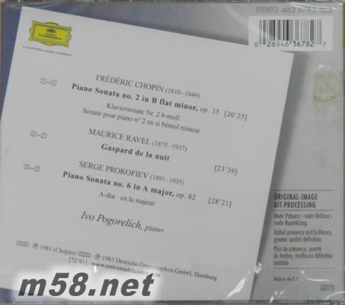 1. Chopin Piano Sonata No.2 in B flat minor, Op.35 Grave - Doppio movimento 2. Scherzo - Piu lento - Tempo I 3. Marche funebre (Lento) 4. Finale (Presto) 5. Ravel Gaspard de la nuit Ondine 6. Gaspard de la nuit Le gibet 7. Gaspard de la nuit Scarbo 8. Prokofiev Piano Sonata No.6, Op.82 Allegro moderato 9. Allegretto 10. Tempo di valzer lentissimo 11. Vivace