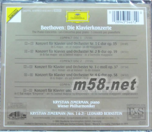 克里斯蒂安·齊默爾曼 & 倫納德·伯恩斯坦 - 貝多芬:鋼琴協奏曲(古典愛好者必備)專輯背面圖片