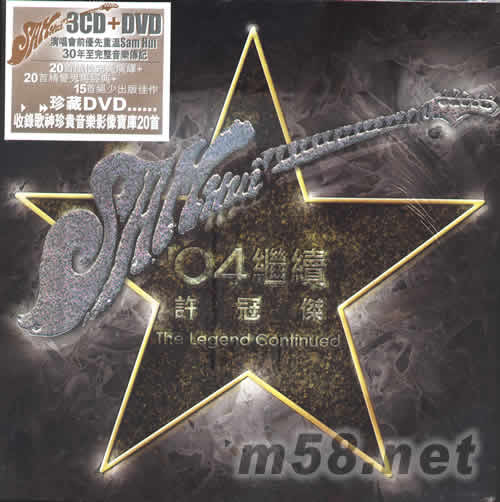 今年,帶給我們的第一個喜訊,推出—《'04 繼續》精選大碟! 3CD收錄許冠杰歌唱事業里程碑55名曲,DVD收錄TVB從未出版經典MV,四碟內容,單碟價,齊來慶祝歌神回歸樂壇!