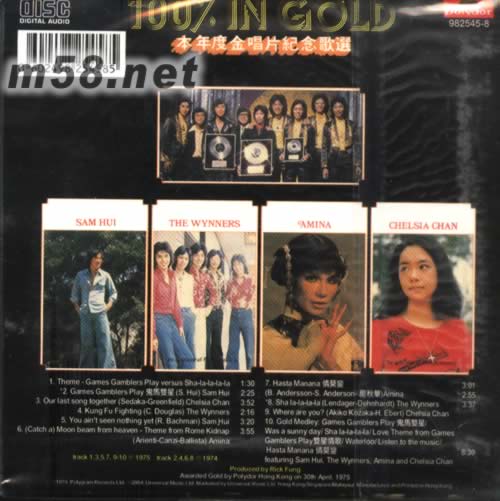 環球復黑王100% IN GOLD 本年度金唱片紀念歌選(m58.net) 環球復黑王系列產品共有60種以上,超值裝,黑色碟片,內含歌詞本及系列產品介紹。