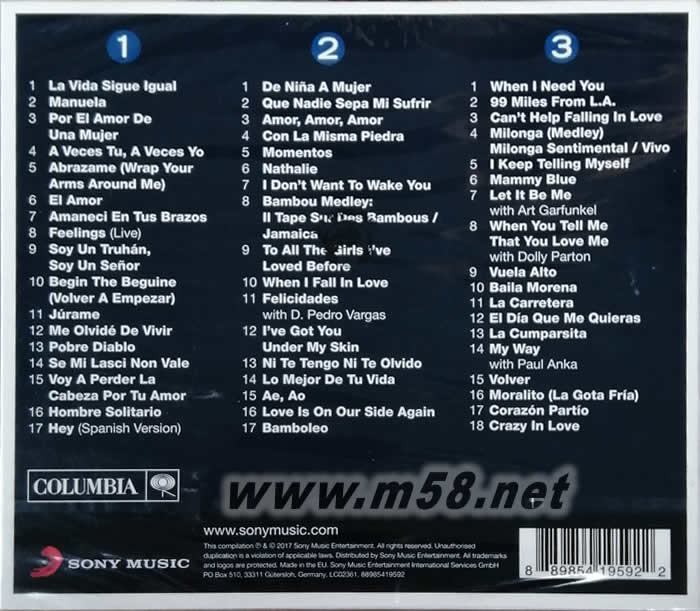 西班牙傳奇拉丁歌手JULIO IGLESIAS 2017最新3CD Box Set ,收錄經(jīng)典歌曲52首。