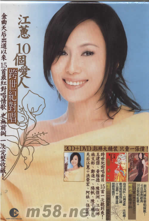 10個愛人(豪華版)(m58.net) 產品長*寬*高=20*14*5CM 江蕙 10 個愛人 跨世紀對唱 金曲天后出道以來 15 首最紅對唱情歌 史無前例一次完整收藏! 天后江蕙 與 阿杜、洪榮宏、陳子鴻、伍思凱、施文彬、江淑娜、王建杰、陽帆、黃維德、陳杰洲 跨世紀對唱曲目一次聽到爽! CD+DVD 超值精裝尚溫暖!跨世紀雙人對唱 金曲 15 首愈聽愈溫暖金曲天后 + 無敵唱將 叱吒臺語歌壇 最紅、最經典對唱金曲朗朗上口 回味無窮! 隨貨附贈發(fā)燒卡拉 14首 (精采影音 DVD)10 首對唱紅歌 + 4 首最熱經典 朋友斗陣快樂唱歸眠!金曲天后 叱吒臺語歌壇 風云對唱歌曲 傳唱度百分百!