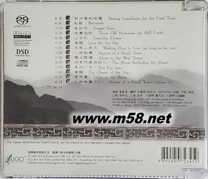 01. 初次嘗到寂寞 Tasting Loneliness for the First Time 02. 船歌 Barcarole 03. 忘記他 Forget Him 04. 往事如昨 Those Old Memories are Still Fresh 05. 山茶花 Camellia Flower 06. 海戀 Love for the Sea 07. 但愿人長久 Wishing Him to Live(as long as he can) 08. 小城故事 Stories of a Small Town 09. 獨上西樓 Alone to the West Tower 10. 月亮代表我的心 The Moon Embodies My Heart 11. 在水一方 Not Far away 12. 海韻 The Charm of the Sea 13. 雪中蓮 Lotus in the Snow 14. 小城故事(二) Stories of a Small Town(VersionⅡ)
