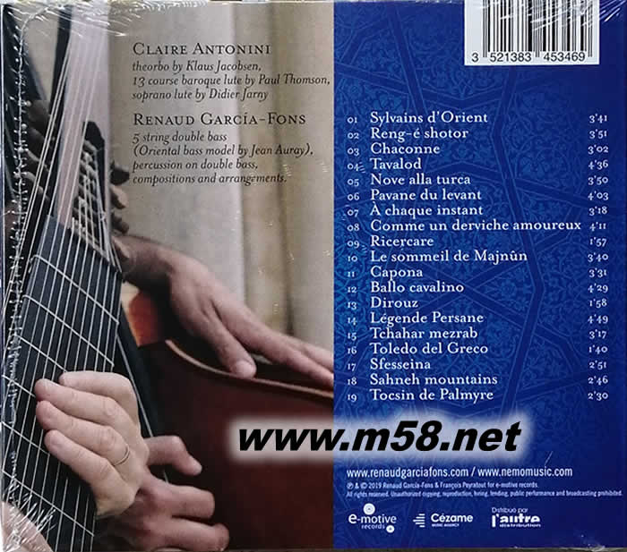 法國低音提琴大師賈西亞范斯(Renaud Garcia – Fons)最新專輯,與魯特琴名家克萊爾安東尼(Claire Antonini)演繹多首原創作品,這張融合巴洛克,地中海及爵士樂風專輯,以動人的旋律帶出自由廣闊的情懷,二重奏的精彩演繹相互呼應,開首一曲 “Sylvains d` Orient”牛筋的彈跳力及弦樂的立體感,展現這張超乎想像的發燒天碟。一場異國情調的音樂會即將開始不容錯過!