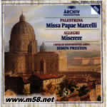 西蒙 普雷斯頓 - 格雷戈里奧·阿雷格里:求主垂伶 Simon Preston - Gregorio Allegri: Miserere(m58.net) 這套《阿雷格里:求主垂伶》由Archive唱片公司發行于1986年,西蒙•普雷斯頓指揮威斯敏斯特教堂演奏錄制,內收錄了阿雷格里的《求主垂伶》及帕萊斯特里納的《馬采魯斯教皇彌撒》等等。 錄音收錄了17世紀意大利人格雷戈里奧•阿雷格里 (Gregorio Allegri,1582-1652)為《舊約》詩篇第51首所譜的合唱曲《Miserere》,阿雷格里為詩篇51首譜寫的這首合唱曲,當然是宗教音樂,但其震撼心靈的力量與宗教信仰卻并沒有直接關系。現代聽眾也許大都不那么虔信宗教,但聽到阿雷格里這首合唱曲,卻不能不深為之感動,覺得那與精神相契合的音樂之美,無法訴諸語言,形之于筆端。阿雷格里一生寫過許多作品,但他在現代的名聲,卻完全建立在這首合唱曲的基礎之上。這首樂曲全用人聲,沒有任何樂器伴奏,由一遠一近兩個合唱隊演唱,分五個聲部,加上四位獨唱,一共九聲部。這九個聲部此起彼伏,交織錯落,在寬闊深厚的背景上,又有飄逸的高音似乎毫不費力地漸升漸高,直升到一個極高的C音,就好象一片亮光,由平靜的海面升上去,一直升到云端,升到天上,直帶我們的心靈進入天國之門。 帕勒斯特里那簡單的音樂風格,并沒有改變尼德蘭樂派一脈相承的彌撒和經文歌的創作形式,甚至在特倫托會議命令對宗教音樂進行“回到格里高利圣詠時代”的規定后,他仍然保留復調音樂的對位式創作手法,只是更突出聲部、聲音與歌詞的清晰。會議中有的決議對教會音樂確實較為苛刻,因為承襲而成的老的創作形式并不能完全立刻被消除,它依然存在一定的價值。在這樣的情形下,為了避免取消復調音樂,帕勒斯特里那很快創作了三首彌撒曲,其中著名的《馬爾切魯斯教皇彌撒曲》 (Missa Papae Marcelli)使大主教們相信在藝術與虔誠之間沒有根本的對立,帕勒斯特里那的音樂完成了反宗教改革的要求,并因此被人稱為“教堂音樂的救星”。 西蒙•普雷斯頓(Simon Preston)為英國管風琴演奏家、合唱指揮家。1938年8月4日出生于伯恩茅斯。早年在劍橋國王學院隨麥克林學習管風琴,后得到一項管風琴獎學金,得以隨特雷弗和威爾科克斯爵士深造。在此期間開始錄制唱片,其中在威斯敏斯特的阿比教堂等錄制的宗教作品,受到人們廣泛好評。1962-1967年擔任阿比教堂助理管風琴師。1970年擔任牛津基督教堂管風琴師和音樂指導。在此他與合唱團一起,錄制了不少唱片,并多次獲獎。西蒙•普雷斯頓與一些知名的樂團合作,諸如柏林愛樂樂團、波士頓交響樂團、圣路易斯交響樂團等,為DG等唱片公司錄制了大量的管風琴作品,包括巴赫的管風琴作品全集,圣-桑的管風琴交響曲等40多張CD。西蒙•普雷斯頓頓被認為是20世紀最優秀的管風琴家之一,被Classic雜志列入20世紀100位最偉大的演奏家中。西蒙•普雷斯頓也是公認的英國教堂音樂大師。