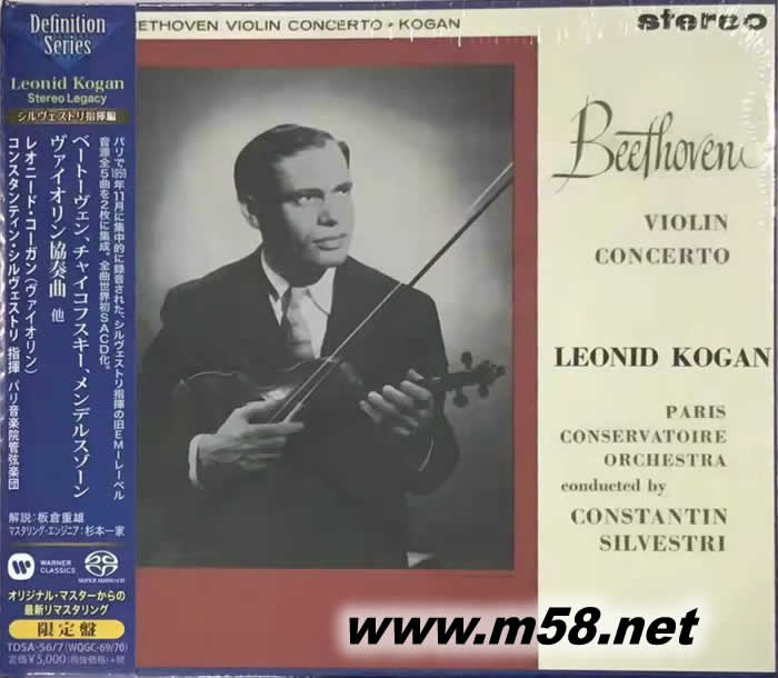 BEETHOVEN VIOLIN CONCERTOS SACD 日本版(m58.net) Leonid Kogan (柯岡) 鼎鼎大名之俄國小提琴家,Blue Moon 以最廣為人知;原汁原味的方式加最精湛的mastering技術,把其同時在1959年11月法國巴黎Salle Wagram完成錄音的兩個作品,Beethoven及Tchaikovsky 小提琴協奏曲以二合一推出。柯岡以無比快速的手法加上粗獷飽滿的音色而聞名,自他在火車上離奇的心臟病發后,他留傳下來之詮釋作品即成為經典。柯岡以鮮明的演奏風格演出Beethoven小提琴協奏曲,壯麗輝煌,像有用不完的活力,斷句明快有力。Tchaikovsky完全展現出其個人風格,就像是對全世界彈奏出此曲的深刻見解,氣勢一時無兩;大開大合,表現霸氣! HI FI REVIEW (2015/8/1) Author: Megan Leonid Kogan Leonid Kogan《貝多芬/柴可夫斯基小提琴協奏曲》均是在1959年的靚錄音,如今兩張原版LP已被炒至天價!我早就買下日本東芝EMI在1991年推出的Kogan《柴協》。已覺錄音甚佳。近年Kogan《貝協》和《柴協》黑膠華麗再版,再次引起發燒友的關注。若你沒有黑膠唱盤,又或覺得再版黑膠不夠經濟,那這合二為一的Blue Moon CD絕對是無敵best Buy! 若說Blue Moon在Belafonte的處理上帶有放任主意,那么,對Kogan CD的處理就來得較正經謹慎、四平八穩。明顯地,Blue Moon要比日版更開揚奔放、透明清晰,小提琴更高、更聚更生動,音場更闊大深后,分隔度更佳! CNA music的廣告:「原裝母盤處理,原汁原味不浮不躁,盡顯模擬錄音本色」。聽過近年Blue Moon製版經典靚錄音CD的發燒友都會知道,其聲音訊息量是多得驚人的,尤其是中頻和高頻,堂音特別多。音場特別闊大高深,所用的母帶當然靚極,絕非dup過又dup的N代copy。我已收藏了十款以上的Blue Moon製版舊錄音,覺得其中頻和高頻訊息量最多,是發燒友的必然期望!今次在Belafonte和Kogan的CD上亦再一次得到印證。 不只一位唱片評論員講過Blue Moon CD的聲音非常analog,有同感。我的同感在於Blue Moon CD那些豐富無比的弱音細節,悠長的余響,巨大的空間感,高速的動態,順暢的變化,活靈活現的音響表情,是追得非常接近優質黑膠唱片了!至於音色。我會用甜絲絲、濕滑暖潤的優質真空管擴音機聲音來形容優質黑膠唱片的聲音效果。至於Blue Moon CD,就是當世最清通光潔的頂級晶體管擴音機;這份極至音效,我們可在這兩張CD上感受得到。