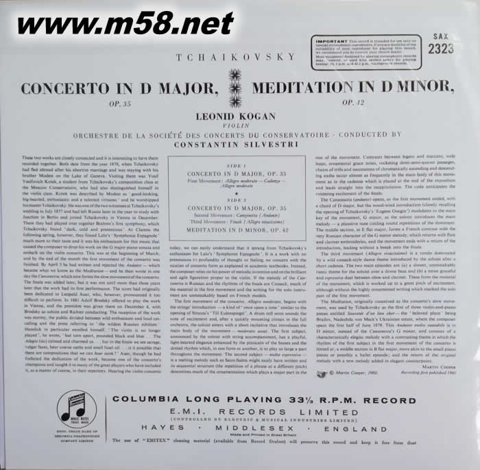 柴可夫斯基:小提琴協(xié)奏曲,沉思曲 TCHAIKOVSKY VIOLIN CONCERT 黑膠專輯背面圖片