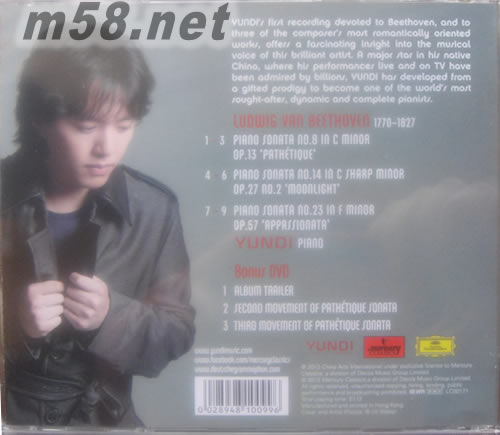 Beethoven : Pathetique&Moonlight&Appassionata貝多芬 特別版(m58.net) 李云迪十年音樂歷程,再次展現(xiàn)名家演繹風(fēng)范 第八號鋼琴奏鳴曲《悲愴》沒有艱深的彈奏技巧,加上第二樂章如歌般淒美的主題旋律,讓它成為貝多芬早期鋼琴奏鳴曲中最著名、演奏率最高的一首。《悲愴》這個標(biāo)題不是后人增補(bǔ),而是貝多芬自己加上的,對這首奏鳴曲的氣質(zhì)而言,是一個相當(dāng)貼切的標(biāo)題。其中有如管弦樂效果般暗潮洶涌的效果,對當(dāng)時的鋼琴是很大的挑戰(zhàn)。 《月光》奏鳴曲創(chuàng)作於1801年,貝多芬把它題獻(xiàn)給自己的學(xué)生。據(jù)說,貝多芬對這個學(xué)生愛慕已久,因此,后人認(rèn)為貝多芬把自己戀愛的心情全部寫在這部奏鳴曲里。「月光」的標(biāo)題,據(jù)說來自德國詩人與樂評人雷爾斯塔伯聽到第一樂章后的形容:「就像月光閃耀著的瑞士琉森湖上,有一葉蕩漾的小舟。」《熱情》奏鳴曲創(chuàng)作於1804-06年間,因?yàn)闅鈩堇做f鈞頭尾兩個樂章,因此出版商為它冠上「熱情」的標(biāo)題。 2000年在蕭邦大賽奪冠之后,李云迪已經(jīng)漸漸成長為一名成熟的音樂家。李云迪的演奏充滿了詩情,觸鍵細(xì)膩卻又能兼顧到音樂應(yīng)該有的力度,樂曲架構(gòu)清晰,是難得一見令人欣喜的全新錄音。