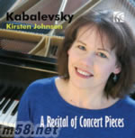 前蘇聯社會主義寫實派作曲家卡巴列夫斯基(Dimitri Kabalevsky) 於”莫斯科音樂院(Moscow Conservator)”跟隨米亞斯柯夫斯基(Nikolai Myaskovsky)學習作曲,也拜師戈登威瑟(Alexander Goldenweiser)學習鋼琴,他除了是一位琴藝精湛的鋼琴家外,還精通創作,寫下不少以鋼琴為主題的雋永作品。女鋼琴家克絲汀.約翰遜(Kirsten Johnson)一向以演奏被忽略的曲目著稱,擁有水準一流的造詣,演繹細膩傳神,同樣是她優越之處。這次.約翰遜與英國古典音樂製作品牌<寧貝斯(Nimbus)>同時出版了兩張卡巴列夫斯基的鋼琴作品選專輯,本輯就以獨奏帶來一些給演奏會的小品包括: