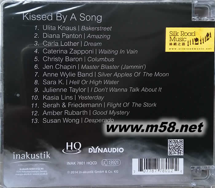 丹拿示范碟+INAKUSTIK發燒示范 通過歌曲的鑒賞 Dynaudio: Kissed By a Song HQCD(m58.net) 丹拿」在過往的30多年丹麥著名品牌「(Dynaudio)」丹拿花了大量的時間作鉆研和技術的投入,不斷製造質素超群的揚聲器。無論是錄音室用作專業鑑聽或是錄音製作,抑或是家庭用戶在其家居或在其汽車內裝置的音響設備,揚聲器在整個音響系統當著重要角色,鑑定音準和真實重播必定要們經由它發揮最高能才能達致最理想的音響效果。丹拿揚聲器的特性是原音,音色清晰細致,動態范圍廣闊,重播真確性極高,這些優質的表現,必須由清澈明亮、解像度高的優秀錄音才可將極級器材的性能完美地呈現?,F由以專業製作及代理高質錄音音效產品而獲發燒樂迷一致推崇的著名德國品牌「in-akustik」為配合宣傳和推廣這丹麥出類拔萃的揚聲器,精心挑選了13首旗下最高質、最具代表性的歌星演繹旋律極為動聽的經典名曲,加上每首歌曲的錄音效果皆令人完全信服,著意地以這些廣獲好評的錄音突顯這名牌揚聲器優越過人的特質,加上完全德國製造的DMM直刻母盤壓製的180克處女膠的黑膠唱片為載體,塑造出一張主題明確、音效突出的鑑聽必然之選