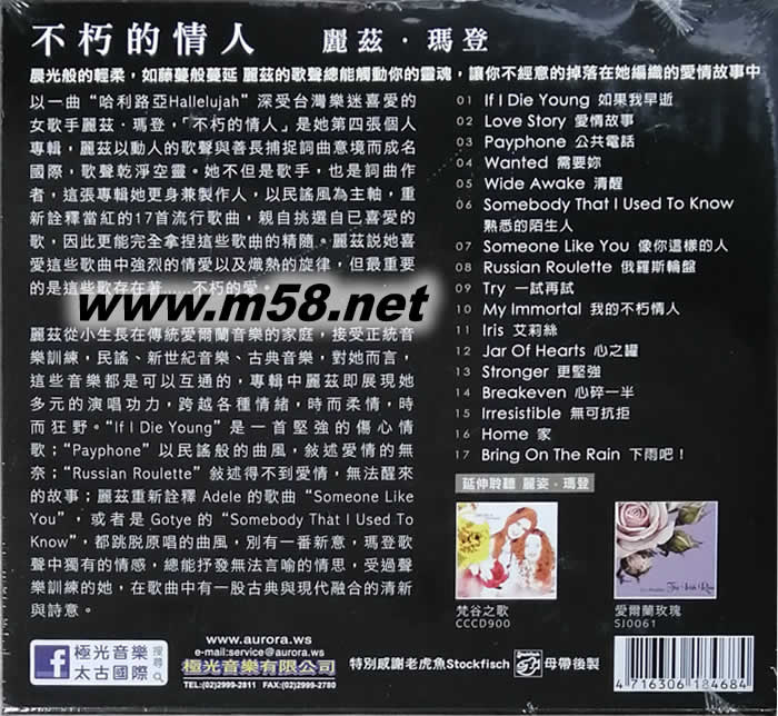 以一曲“哈利路亞Hallelujah”深受樂(lè)迷喜愛(ài)的女歌手麗茲.瑪?shù)牵覆恍嗟那槿恕故撬谒膹垈€(gè)人專輯,麗茲以動(dòng)人的歌聲與善長(zhǎng)捕捉詞曲意境而成名國(guó)際,歌聲乾凈空靈。她不但是歌手,也是詞曲作者,這張專輯她更身兼製作人,以民謠風(fēng)為主軸,重新詮釋當(dāng)紅的17首流行歌曲,親自挑選自已喜愛(ài)的歌,因此更能完全拿捏這些歌曲的精隨。麗茲說(shuō)她喜愛(ài)這些歌曲中強(qiáng)烈的情愛(ài)以及熾熱的旋律,但最重要的是這些歌存在著......不朽的愛(ài)。 麗茲從小生長(zhǎng)在傳統(tǒng)愛(ài)爾蘭音樂(lè)的家庭,接受正統(tǒng)音樂(lè)訓(xùn)練,民謠、新世紀(jì)音樂(lè)、古典音樂(lè),對(duì)她而言,這些音樂(lè)都是可以互通的,專輯中麗茲即展現(xiàn)她多元的演唱功力,跨越各種情緒,時(shí)而柔情,時(shí)而狂野。“If I Die Young”是一首堅(jiān)強(qiáng)的傷心情歌;“Payphone”以民謠般的曲風(fēng),敘述愛(ài)情的無(wú)奈;“Russian Roulette”敘述得不到愛(ài)情,無(wú)法醒來(lái)的故事;麗茲重新詮釋Adele的歌曲“Someone Like You”,或者是Gotye的“Somebody That I Used To Know”,都跳脫原唱的曲風(fēng),別有一番新意,瑪?shù)歉杪曋歇?dú)有的情感,總能抒發(fā)無(wú)法言喻的情思,受過(guò)聲樂(lè)訓(xùn)練的她,在歌曲中有一股古典與現(xiàn)代融合的清新與詩(shī)意。