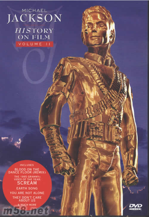 HISTORY ON FILM VOLUME II DVD 美版(m58.net) MICHAEL JACKSON并非每個人手上那杯茶,但此乃有史以來映象與音效最正的DVD之一,碟中每首歌的鏡頭布局和音鄉效果都令人拍案叫絕,此碟內容是流行音樂制作,但其高低頻伸延之佳與動態之強勁卻不下于最靚聲的DVD電影,換句話說,此碟將DVD科技之優點發揮盡致。 DIGITAL DVD VIDEO INCLUDES BLOOD ON THE DANCE FLOOR(REMIX) THE 1995 GRAMMY VIDEO OF THE YEAR SCREAM EARTH SONG YOU ARE NOT ALONE THEY ARE NOT ALONE THEY DON'T CARE ABOUT US &MUCH MORE