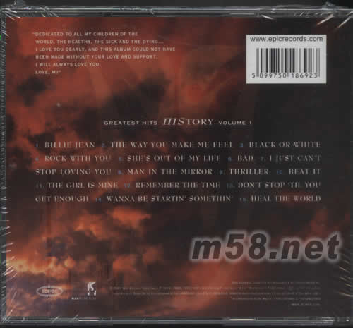 1、BILLIE JEAN 2、THE WAY YOU MAKE ME FEEL 3、BLACK OR WHITE 4、ROCH WITH YOU 5、SHE’S OUT OF MY LIFE 6、BAD 7、I JUST CAN’T STOP LOVING YOU 8、MAN IN THE MIRROR 9、THRILLER 10、BEAT IT 11、THE GIRL IS MINE 12、REMEMBER THE TIME 13、DON’T STOP TIL YOU GET ENOUGH 14、WANNA BE STARTIN SOMETHIN 15、TEAL THE WORLD