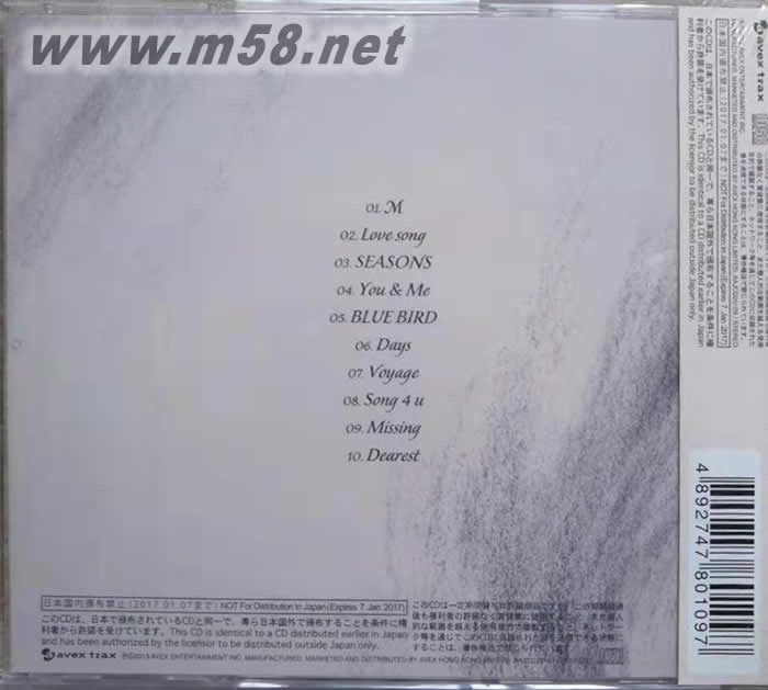 1.M 2.Love song 戀曲 3.SEASONS 四季 4.You & Me 5.BLUE BIRD 青鳥 6.Days 歲月 7.Voyage 旅途 8.Song 4 u 為你歌唱 9.Missing 想你 10.Dearest 最愛