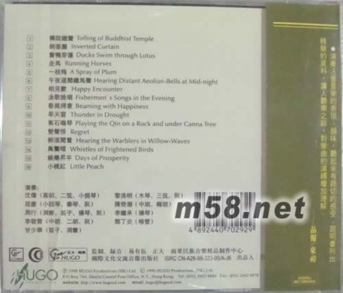 禪院鐘聲(廣東音樂)(m58.net) 廣東音樂 演奏注重音樂的表現(xiàn),韻味,聽起來有親切的感受,說明書列出精簡的資料,讓人聽樂之余,對樂曲的演繹增加理解.