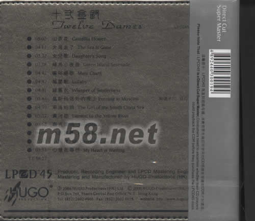 十二金釵LPCD(m58.net) 溫馨提示:LPCD45為直刻超極母盤,消費(fèi)者要先確認(rèn)所使用的CD唱機(jī)能夠播放CDR才好購買。 LPCD是雨果創(chuàng)辦人,著名錄音監(jiān)制,資深音樂家易有伍先生積35年音樂實(shí)踐體會和20年錄音制作經(jīng)驗(yàn)研究出來的最新成果。它憑著一套獨(dú)特的技術(shù)處理,讓你能在普通CD機(jī)上得到LP密紋唱片的模擬音質(zhì)感受。