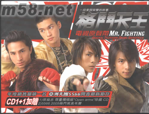 價格為估,以實到貨為準! 格斗天王電視原聲帶(臺灣開春限量版)(m58.net) 請點看產品正、背面大圖 年度銷量第一名亞洲天團5566開春最新巨作 CD1+1加贈 1、孫協志限量獨唱版“OPEN ARMS”珍藏CD 2、5566 2005格斗寫真年歷