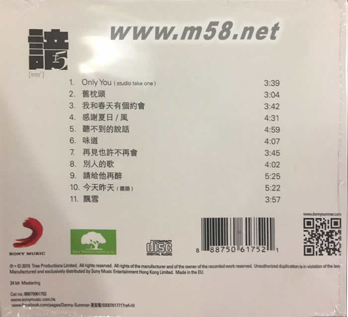 諳 5(m58.net) 夏韶聲 + [ 諳 ] 十多年來在本地及國內(nèi) "發(fā)燒音響" 界已成為一個殿堂唱片專集系列 [ 諳 5 ] 同樣地由 Danny 監(jiān)製、Roel Garcia 的編曲、John Lin Hei 混音 這自 "諳 1" 至今的音樂鐵三角,得到樂迷及音響發(fā)燒羣口碑中再度合作 這一次更有專業(yè)音響兼結(jié)他手的 Enrest 劉賢德加入於提供錄音器材及提議高級專業(yè)音響器材之音頻數(shù)據(jù),一起打造這己建立於大家心中的 "諳" 系列延續(xù) ----- [ 諳 5 ]。 為求音色更完美母帶特別運往美國混音首批CD限量歐洲壓碟 配合HiFi書及強勁店舖擺設(shè)宣傳 24bit數(shù)碼錄製最高音質(zhì)CD發(fā)燒上市